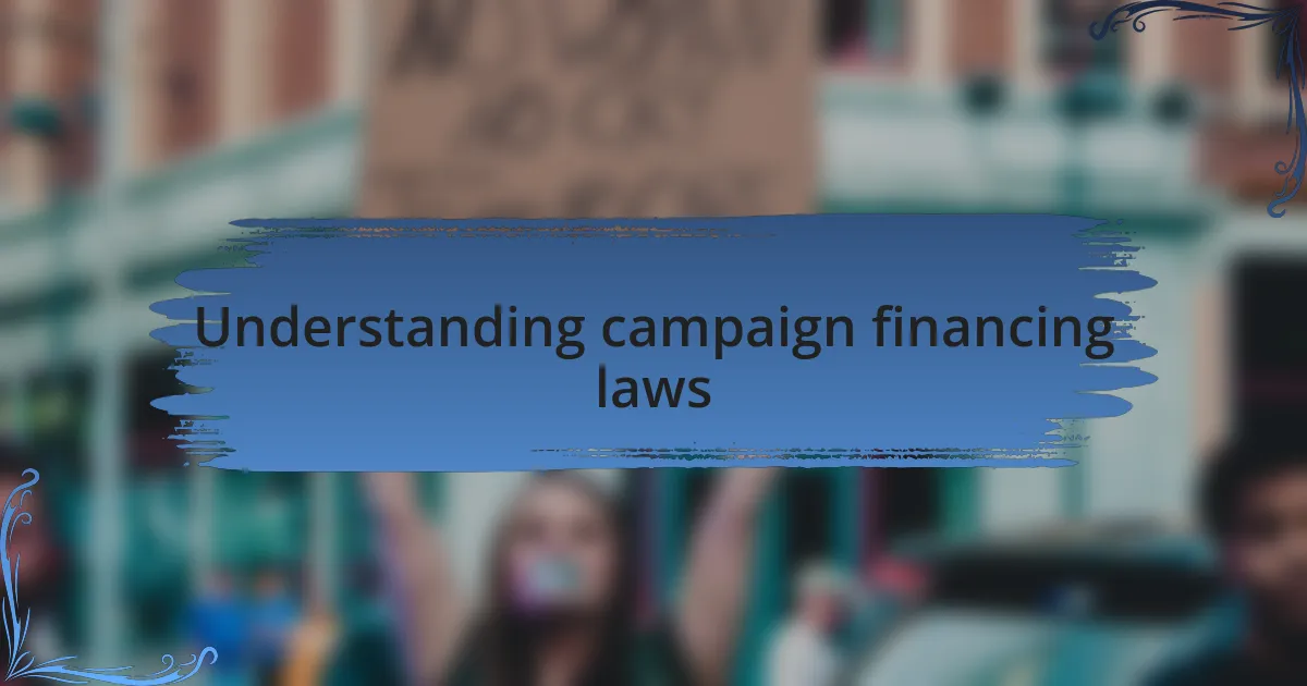 Campaign financing laws are complex and vary significantly from state to state. I remember the first time I delved into these regulations; it felt overwhelming. For instance, understanding the limits on contributions and the requirement for transparency can be a real maze if you’re not paying close attention. Have you ever wondered why some candidates have so much more visibility during their campaigns? It often boils down to how well they navigate these laws.
