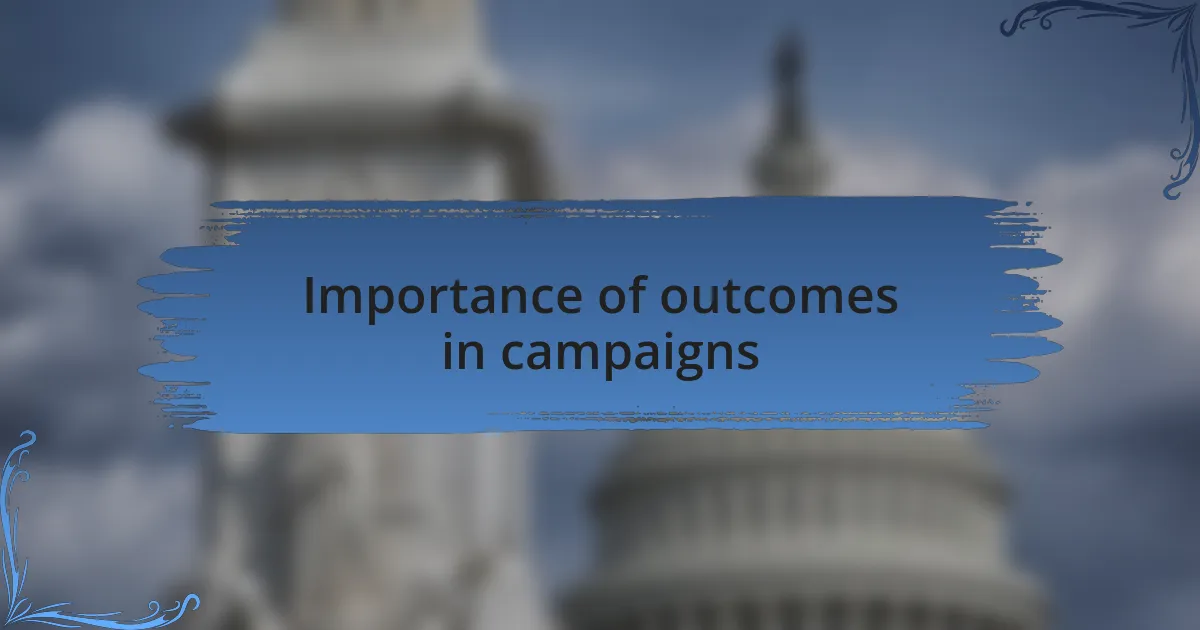 Outcomes in campaigns serve as a compass, guiding our strategies and decisions. I remember implementing a feedback loop where we regularly assessed not just the funds raised, but the tangible benefits delivered. This approach uncovered areas for improvement and encouraged more innovative ideas, ultimately leading to a richer relationship with our supporters. Have you considered how using feedback can reshape your campaign’s trajectory?