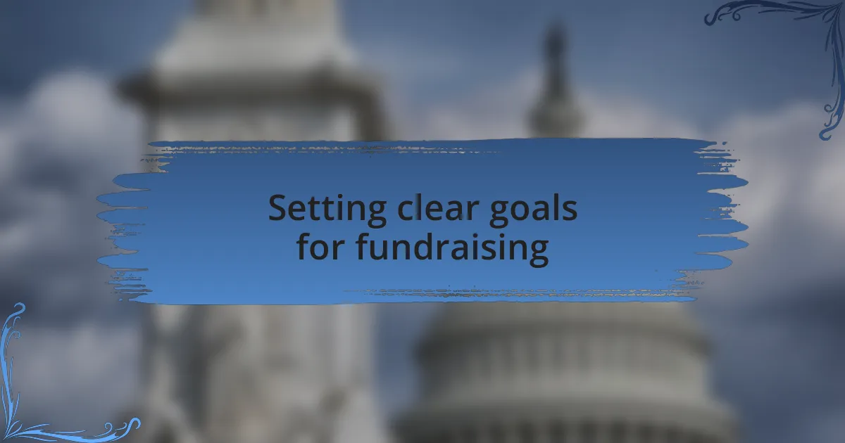 When setting clear goals for fundraising, specificity is key. For instance, during my campaign, I aimed to raise a precise amount for a community initiative, rather than just saying we needed funds. This clarity helped me to create a focused strategy, making it easier to communicate our needs to potential donors. Have you ever considered how detailed goals can sharpen your messaging?