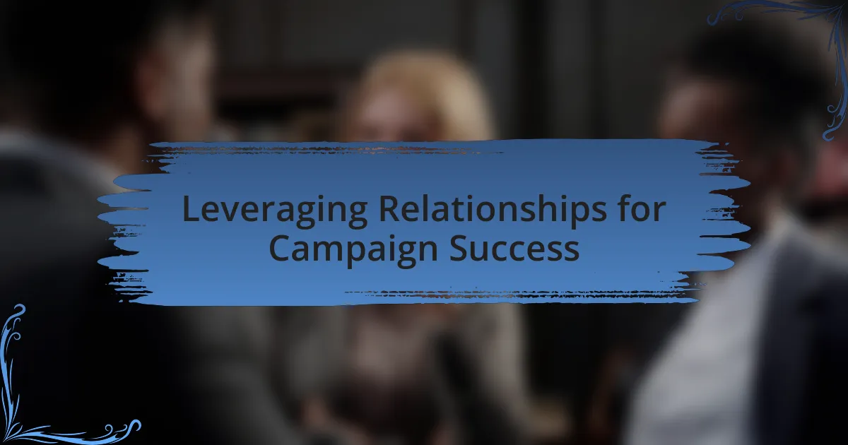 Strengthening relationships is at the heart of campaign success. I remember a coffee meeting with a local business owner who shared insights about community needs and encouraged me to tailor my message accordingly. It was a simple interaction, yet I walked away with fresh ideas that aligned my campaign with the concerns of potential voters. What if every casual chat could unveil crucial perspectives that reshape our approach?