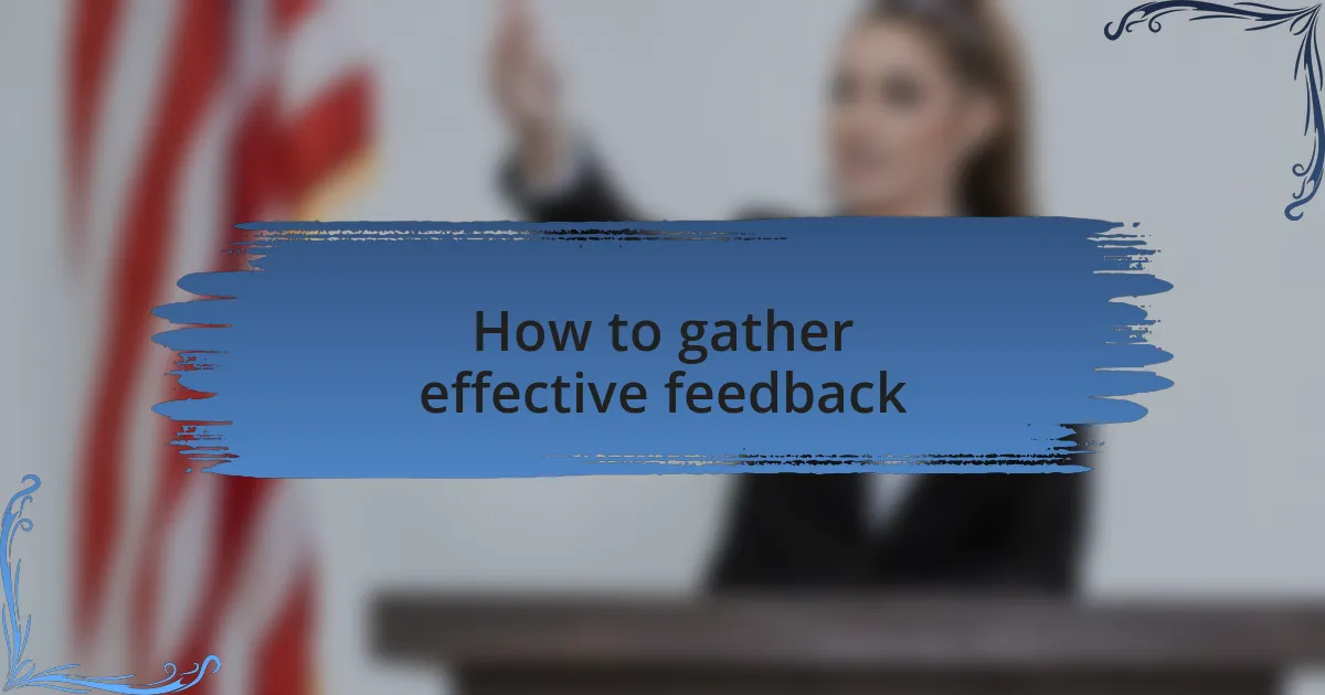 Gathering effective feedback starts with creating an environment where supporters feel comfortable sharing their honest thoughts. In my experience, I found that informal settings worked wonders—whether it was a casual coffee chat or an online forum. When people are relaxed, they tend to open up more, sharing insights that truly matter. Have you ever noticed how a simple, genuine conversation can reveal layers of feedback that structured surveys miss?