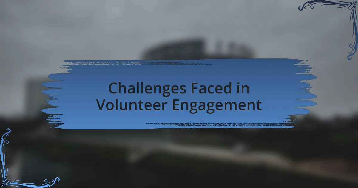 One of the significant challenges I faced in volunteer engagement was the varying levels of commitment among volunteers. I remember one instance where a group of enthusiastic recruits promised to help with a major event, but as the date approached, some fell off the radar. It left me wondering, how do we ensure that the excitement of volunteerism translates into reliable support? This unpredictability can be discouraging, especially when you’re trying to build momentum.