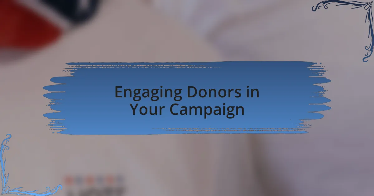 Engaging donors effectively requires a personal touch. I recall an event where we invited a few key donors to a brainstorming session about campaign strategies. It was remarkable to see how much they appreciated being included in the decision-making process. When supporters feel their voices matter, they’re not just donors; they become invested advocates for your cause. Have you considered how inviting donors into your campaign discussions could strengthen their connection?