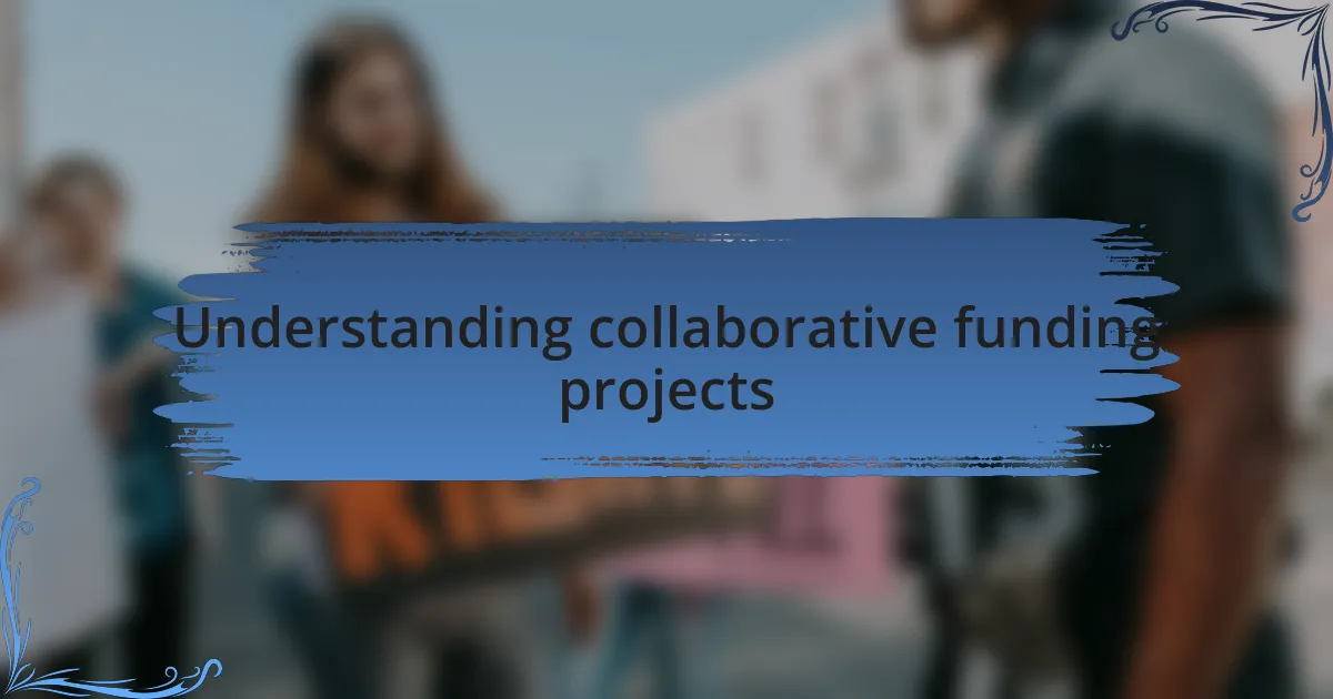 Collaborative funding projects are essentially partnerships where individuals or organizations pool their resources to support a shared goal. I recall working on a project where several nonprofits came together to tackle community issues. The synergy we created was incredible; it was heartening to see how our collective efforts led to meaningful change.
